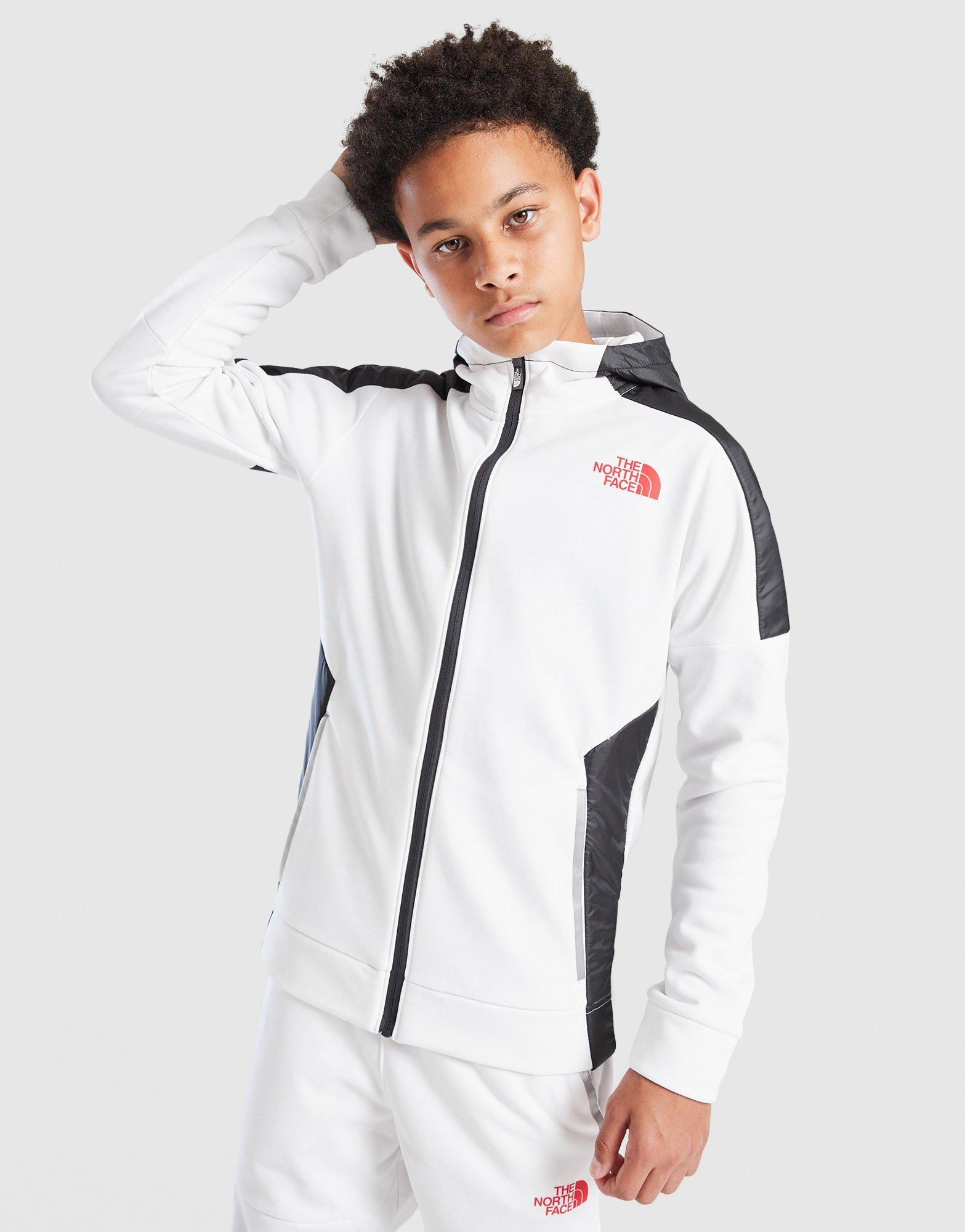 This kids' The North Face Mittelegi Full Zip Hoodie delivers mountain-inspired style and reliable comfort in crisp White. Layering made easy. Perfect for when the temperature drops, the soft fleece fabric keeps you cosy whether you're hitting the trails or just chilling with friends.